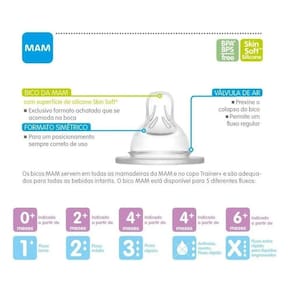 - Os bicos MAM servem em todas as mamadeiras MAM e no copo Trainer+
