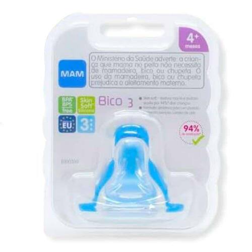 Bico de Mamadeira - SkinSoft - Bico 3 - Fluxo Rápido - 4m - MAM: o Bico 3 para Mamadeiras MAM, possui o fluxo rápido e é recomendado a partir de 4 meses de idade. Graças a tecnologia MAM, desenvolvida com ajuda de especialistas da saúde, o bico possui silicone SkinSoft levando uma sensação suave e natural. Detalhes: • Recomendado a partir de 04 meses • Bico MAM com tecnologia SkinSoft, textura macia e sedosa, comprovadamente aceita por 94% das crianças. • Formato simétrico para um posicionamento sempre correto de uso. • Válvula de ar estrategicamente localizada na lateral do bico para um fluxo mais suave. • Compatível com todas as mamadeiras MAM e com o copo Trainer+ Informações: • Produto: Bico 3 para Mamadeira MAM • Marca: MAM • Tipo: Bico para Mamadeira • Categoria: Hora do Papa do Bebê • Subcategoria: Mamadeiras e Acessórios • Tamanho (C x A): 05 x 4.5 cm • Conteúdo: 01 bico de mamadeira MAM • Recomendação: para bebês a partir de 04 meses de idade Especificações: • Modelo: Bico 3 MAM Fluxo Rápido • Referência: BI00310 • Código de Barras: 9001616243943 • Embalagem (C x A x L): 9.5 x 12 x 06cm • Embalagem (Peso): 0.020kg • Material / Composição: Silicone • Registro: CE-PUR/IQB 0153 NBR 13793 - OCP 0006 • Certificado: Órgãos Autorizados - OCP´S (Organismos de Certificação de Produtos) Aviso: • As imagens são meramente ilustrativas • Os pesos, tamanhos e medidas são aproximados • As cores e estampas dos produtos podem ter variações • As informações são de responsabilidade do fabricante ou fornecedor
