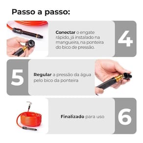 - Fácil manuseio: instalação e uso simples, acessível mesmo para quem não tem experiência em limpeza com mangueira de alta pressão.