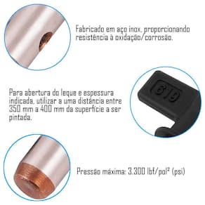 - Pressão máxima indicada: 3.300 lbf/pol²;