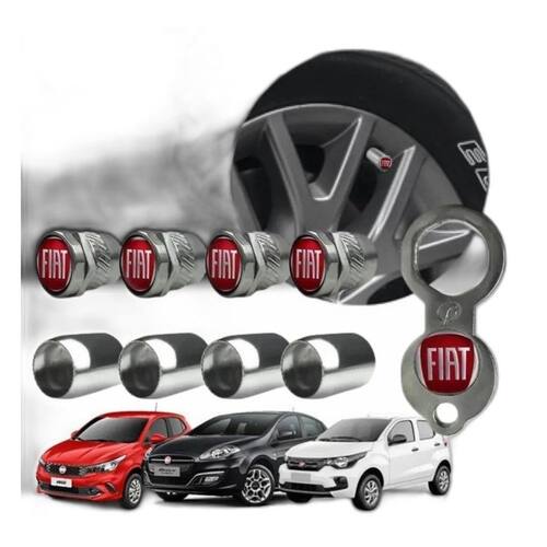 Bico Pneu Cromado Roda Válvula Antifurto Fiat Vermelho Metal Detalhes do Produto: