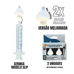 Nossa loja oferece uma ampla variedade de produtos para atender às suas necessidades de cuidados de saúde. Apresentamos o Bico de Silicone para Seringa de Lavagem Nasal Modelo Slip, uma solução eficaz para a limpeza nasal. Este bico é feito de silicone transparente, sem bpa, macio, proporcionando conforto e precisão durante o uso. Com seu design anatômico, encaixa-se perfeitamente, garantindo uma experiência agradável. Cada embalagem contém 2 bicos de silicone.