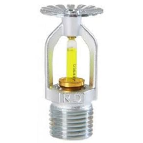 Bico Sprinkler Combate Incêndio Pendente 79°C 1/2 Sprinklers chuveiros automáticos utilizados na extinção de incêndio, através do disparo imediato a uma temperatura de 68ºC. As ampolas contém um líquido altamente expansível, a pressão criada pela expansão do líquido rompe a ampola, dando saída para a água, que é se espalha em forma de chuva sobre o foco do incêndio. Posição: Pendente Cobertura: Padrão Diâmetros: 1/2 Acabamento: Natural ou Cromado Ean: 9995552598079