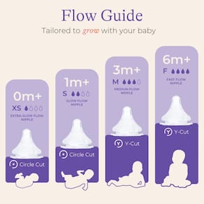 - Fluxo de leite que eles controlam – Nossos bicos de mamadeira permitem que o bebê faça o trabalho ao se alimentar. A ponta flexível estica e comprime para que seu bebê controle o fluxo de leite, dando a ele a quantidade certa de leite em seu próprio ritmo