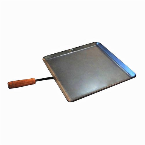 Bifeteira Chapa de Aço Lisa Quadrada Cabo Madeira 30x30cm