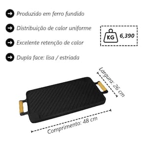 Bifeteira Chapa Dupla Face Em Ferro Fundido 26x48 Cm