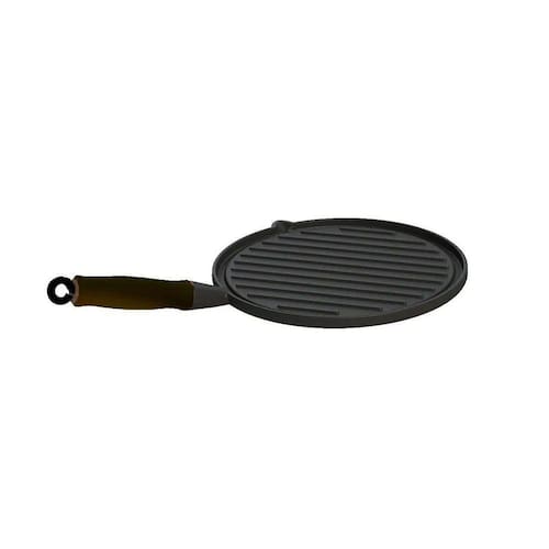 01 Bifeteira Ferro Redonda Cabo SIlicone Preto Estriada 26cm