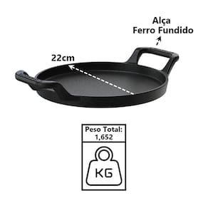 Bifeteira Redonda Alça Ferro Fundido Suporte Madeira 22cm, prática e versátil é própria para servir, além de ser super-resistente com ótimo acabamento, pode ser utilizada ainda para frituras de outros alimentos pequenos, e devido ao seu tamanho pode ser bem útil também em viagens, campings, etc.