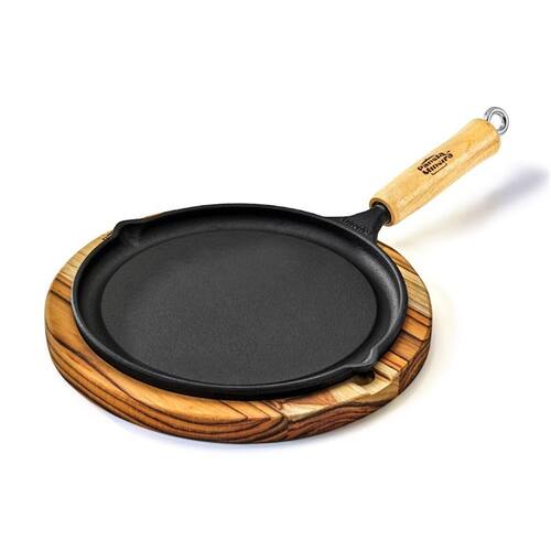Bifeteira Redonda Lisa Suporte Madeira Panela Mineira 24x3cm