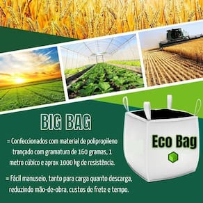 Contém 1 Big Bag modelo C1 na marca Eco Bag.Medida: 1,20 cm x 90 cm x 90 cm no material Ráfia.Material de polipropileno trançado produzido na na gramatura de 160 gramas, de 1 metro cúbico, e para aproximadamente 1000 kg de resistência.Este produto é muito utilizado para as finalidades de armazenamento de reciclagem, entulho, jardinagem e outras finalidades Marca: Eco Bag