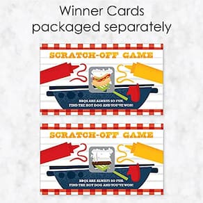 Experimente estas ideias do jogo Fire Up the Grill Party Scratch Off Cards: SIMPLES: Entregue uma carta de jogo raspada aos hóspedes quando eles chegarem. RÁPIDO: Defina uma carta de jogo raspada em cada ponto das mesas para que os convidados possam jogar enquanto desfrutam da refeição. FAVORITO: Distribua raspadinhas individuais como mini prêmios durante jogos mais longos, como bingo de presente. Faça com que todos arranhem ao mesmo tempo e os vencedores recebam um grande prêmio.