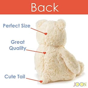 Este adorável ursinho joon com fita tem cerca de 28 polegadas de altura. O ursinho de pelúcia abraçado, animal de pelúcia adorável. Completo com uma fita no pescoço, este grande melhor amigo vai ficar ótimo em qualquer quarto ou brinquedoteca. O ursinho de pelúcia Joon apresenta: tecido de poliéster plush extra-macio, olhos de plástico, pés impressos em patas e uma fita no pescoço do urso. Quando ele precisa de um banho, a superfície o lave com um pano úmido. Altura: cerca de 28" do pé às orelhas. Altura sentada: Aproximadamente 20 polegadas. Cor: Creme.