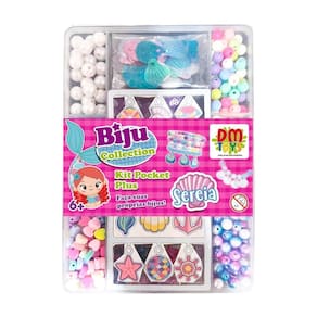 Biju miçangas para fazer pulseirinhas collection kit sereia plus dm toys Cor: colorida A linha biju collection é linda com a linha sereia, brinque de criar suas próprias bijuterias Idade recomendada: Acima de 06 seis anos Conteúdo: - 1 caixa contendo miçangas diversas, pingentes, argolas, 2 fitas e 3 cordões Peso aproximado das miçangas: 63g Composição: plásticos ps e acrílico Avisos importantes: Idade recomendada: a partir de 6 anos de idade. Não recomendado para menores de 3 anos, pois contém partes pequenas que podem ser engolidas ou aspiradas. As cores e medidas podem sofrer pequenas variações entre as imagens e especificações mostradas acima. : 90 dias por defeito de fabricação. A não cobre defeitos ou danos causados pelo uso indevido. Selos de segurança: Inmetro ce-bri/innac 00128-05a nm 300/2002 Ean: 7899205965350
