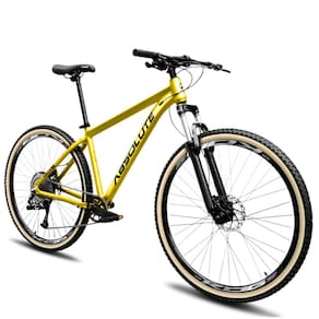 Principais Componentes - Quadro Aro 29 em Alumínio Absolute Nero 5 - Suspensão de 100mm de Curso Com Trava No Guidão - Aros Aeros para Disco Folha Dupla