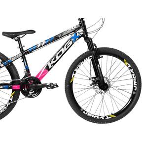 A Dias Bike apresenta ao mercado juntamente com sua marca KOG, seu mais novo lançamento aos amantes de ciclismo e de freeride, a Bicicleta Aro 26 Infantil KOG Full X25 Freio a Disco 21v. Contando com 10 variações de cores para todos os tipos de gosto, quadro confeccionado totalmente em alumínio 6061 para maior leveza e resistência contra o tempo e uso levando um sistema de transmissão de 21 velocidades. A Bicicleta Aro 26 Infantil KOG Full X25 Freio a Disco 21v é a escolha perfeita para você que gosta de estilo, robustez e performance, tudo isso em uma só bicicleta. Essa jóia do ciclismo você só encontra aqui conosco, da Dias Bike, não fique de fora e venha fazer parte desta história. COMPONENTES DA BIKE - Quadro aro 26 Alumínio KOG Full X25 em Alumínio - Suspensão de 80mm - Aros Alumínio VMAXX SL - Raios Zincados Pretos - Pneus Aro 26 Com Arame - Camara de ar 26 Bico Grosso - Jogo Direção Ahead Set - Suporte Do guidão 75 a 90mm - Guidão 680 a 700 mm - Canote do Selim em Alumínio - Pedal em Plataforma Comum - Arruela Calço para Ahead Set (3 unidades) - Manopla - Abraçadeira do Selim com Blocagem - Selim - Disco de Freio De 160mm 6 Parafusos - Freio a Disco Mecânico com Pastilha RELAÇÃO (TRANSMISSÃO DA BIKE) - Roda Livre 7 Velocidades - Pedivela Roda tripla em Aço Encapado 3V - Trocador Rapid Fire - Cambio Dianteiro 3V Top Pull - Cambio Traseiro 7V - Cubos Sistema Rosca esferado - Corrente 7 Velocidades - Jogo de Centro Blindado Marca: KOG Bikes