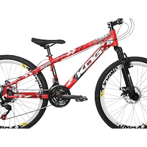- Quadro aro 26 Alumínio KOG Full X25 em Alumínio - Suspensão de 100mm com trava - Aros Parede Dupla em Alumínio - Raios Zincados Pretos - Pneus Aro 26 Com Arame - Camara de ar 26 Bico Grosso - Jogo Direção Ahead Set Rolamentado - Suporte Do guidão 75 a 90mm - Guidão 680 a 700 mm - Canote do Selim em Alumínio - Pedal em Plataforma Comum - Arruela Calço para Ahead Set (3 unidades) - Manopla - Abraçadeira do Selim com Blocagem - Selim - Disco de Freio De 160mm 6 Parafusos - Freio a Disco Hidráulico com Pastilha