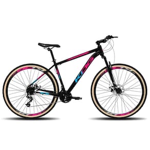 Bike Aro 29 Kog 24v Freio Hidráulico Absolute KSW GTA - Cor: Preto+Rosa+Azul / Tamanho: 15