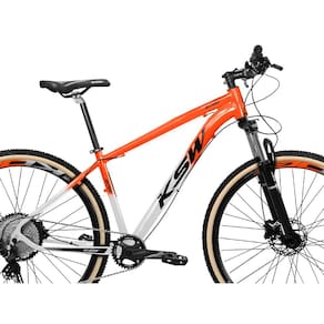 Bike Aro 29 MTB KSW XLT100 12 Velocidades Freios Hidráulicos - Cor:Laranja Degradê+Branco;Tamanho:21