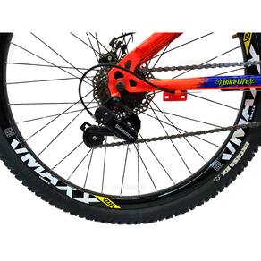Seu conjunto de transmissão com 21 velocidades, câmbios padrão MTB e alavancas Rapid Fire V garante trocas de marchas ágeis e precisas. Os aros VMAXX em alumínio de parede dupla oferecem maior resistência, enquanto os freios a disco mecânico asseguram segurança e eficiência na frenagem.
