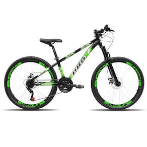 ATENÇÃO SUSPENSÃO ENVIADA É ARO 29 COM CURSO DE 80MM Componentes da Bike Freeride Pro-X Mandrake Hiten 2024 A bicicleta montada com o quadro PRO-X Freeride Mandrake Hiten foi projetada para encarar trilhas e terrenos acidentados, oferecendo durabilidade, controle e potência. Seus componentes foram cuidadosamente selecionados para proporcionar uma experiência de pilotagem de alta performance no freeride. Veja abaixo os detalhes: Suspensão e Estrutura Garfo: Suspensão Aro 29 com 80mm de curso. Quadro: PRO-X Freeride Mandrake Hiten. Aros: Aros Aero para freios a disco e V-brake, com folha dupla para maior resistência. Raios: Zincados. Pneus: Aro 26 com cravos, oferecendo tração superior. Câmaras de Ar: aro 26 Bico Grosso. Componentes de Controle Jogo de Direção: Over Head Set. Suporte do Guidão: 31.8mm. Guidão: 31.8mm. Canote do Selim: Ajustável para conforto personalizado. Pedais: Inclusos. Arruela Calço: Ahead Set com 1cm guidão. Manoplas: MTB. Abraçadeira do Selim com Blocagem: Para ajustes rápidos e práticos. Selim: MTB. Sistema de Freios Disco de Freio: 160mm para uma frenagem eficiente e segura. Freio a Disco Mecânico: Com pinças e pastilhas, oferecendo potência de frenagem confiável. Relação (Transmissão da Bike) Roda Livre: Indexada 7 velocidades. Pedivela: Aço encapado. Trocador: 21 velocidades (3x7) tipo orelinha ou handfire. Câmbio Dianteiro: Shimano, com 3 velocidades. Câmbio Traseiro: Shimano, com 7 velocidades. Cubos: De rosca. Corrente: Indexada 7V. Jogo de Centro: Selado e rolamentado.