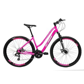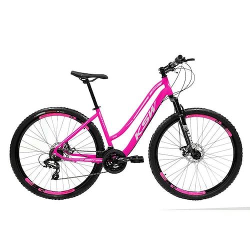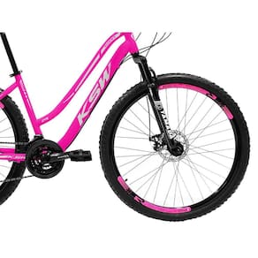 Bike Feminina 29 KSW Sunny 21V Freio a Disco e Trava - Cor: Rosa+Prata / Tamanho: 17