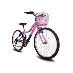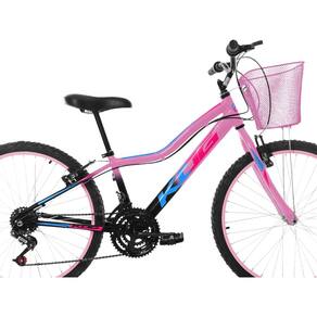 Bike Infantil Feminina Aro 24 KOG Alumínio 18V Cestinha - Cor: Preto+Rosa