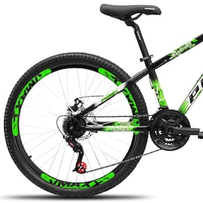 Bike PRO X aro 26 Freeride 21V Freio a Disco Vzan Vmaxx - Cor: Preto + Verde e Branco