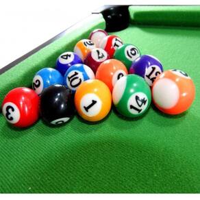 Mini mesa de BILHAR / SINUCA completa com todos os acessórios de uma mesa profissional, modelo compacto com 50 cm que permite seu transporte para qualquer lugar, é uma opção para aqueles momentos de descontração, leve-a com você em suas viagens e festas. Este produto não necessita de montagem prévia, já vem montada. Recomendado para crianças com mais de 7 anos por conter peças pequenas que podem ser engolidas. As cores podem variar entre as imagens mostradas acima e o produto . Recomendado para crianças com mais de 7 anos por conter peças pequenas que podem ser engolidas. CARACTERÍSTICAS Mesa em Madeira Resinada Revestida em Feltro Verde Laterais Internas Emborrachadas Bolas com 2,5 cm de Circunferência Medidas da Mesa Montada: 51cm x 31cm x 10cm Peso Aproximado: 3,3 Quilos Tacos com 48 cm CONTEÚDO 1 Mini Mesa Bilhar / Sinuca 1 Triângulo para Preparação 2 Mini Tacos 15 Bolas Coloridas 1 Bola Branca 1 Giz 1 Manual de Instruções Marca: Não Informado