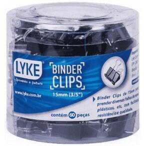 O Binder Clips LYKE de 15 mm é ideal para organizar diversas coisas, prender folhas de papel, plásticos, etc, com resistência e qualidade. Tem uma função muito importante no dia a dia da maioria das pessoas, auxiliando na organização dos papéis. Geralmente muito utilizado em escritórios, tem uma grande eficiência, guardando muitas folhas por vez Maior resistência e maciez em todo o processo.