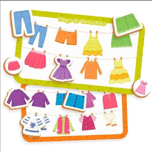 Bingo do Varalzinho Madeira 2198 Brincadeira De Criança Bingo do Varalzinho Madeira 2198 Brincadeira De CriançaO Bingo do Varalzinho está de cara nova Agora com 5 cartelas e 68 peças. Acompanha saquinho para sortear Esse brinquedo faz com que as crianças aprendam a jogar bingo e identificar as peças de roupas de uma forma lúdica e simples. O jogo educativo Bingo do Varalzinho também ajuda as crianças a desenvolver o raciocínio lógico, a atenção, concentração, percepção visual, sociabilização e a coordenação motora.Idade Recomendada: + 4 anos. Material: MadeiraGarantia: Contra Defeitos de Fabricação Prazo de garantia: 03 meses de garantia legal. Observe atentamente a idade recomendada para o brinquedo. Pode conter partes pequenas que podem ser engolidas e perigosas. Fotos ilustrativas as cores e modelos podem sofrer alterações sem aviso prévio