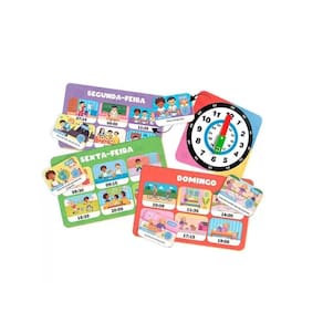Bingo Que Horas São Montessori - Brincadeira de Criança Toda a diversão de um jogo de bingo somada a uma mecânica que auxilia as crianças a aprenderem a ver as horas e a associar os horários e afazeres dos dias da semana. Além do jogo de bingo, mais duas atividades podem ser feitas: As crianças podem utilizar a cartela de treinamento, na qual elas podem brincar livremente montando um dia com seus próprios afazeres e utilizando o relógio analógico que acompanha o produto, as crianças podem aprender a ver as horas. Idade recomendada: A partir de 5 anos. Selo Inmetro: 006339/2021 Ean: 7898565513690