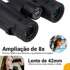 Imagine estar no meio da natureza, observando pássaros raros, montanhas ao longe ou a vida selvagem em plena ação. Com o VX Series 8x42mm HD, você não perde nenhum detalhe. Com uma ampliação de 8x e lentes de 42mm, esses binóculos proporcionam imagens nítidas e ricas em detalhes, mesmo em condições de pouca luz. O revestimento anti-reflexo e as lentes FMC garantem uma visibilidade superior, enquanto o prisma BAK-4 otimiza a qualidade da imagem, trazendo cores precisas e vibrantes. E não é só isso. Com sua construção à prova d'água (IPX6) e antiembaçante, você pode enfrentar qualquer clima - desde dias ensolarados até momentos de neblina ou chuva intensa. Seja para observação de pássaros, trilhas, acampamentos, ou simplesmente aproveitar as maravilhas da natureza. Além de toda a tecnologia ótica de ponta, ele vem com acessórios práticos como uma capa protetora, alça para pescoço e uma flanela de microfibra, garantindo que seus binóculos estejam sempre prontos e protegidos. Será que 8x de ampliação é suficiente? A ampliação de 8x é perfeita para equilibrar potência e estabilidade, garantindo uma visualização clara sem trepidações. Além disso, a lente de 42mm proporciona um campo de visão amplo, facilitando a observação de objetos em movimento, como animais ou aves. E se eu precisar usar em condições de chuva ou neblina? Não se preocupe. Com uma estrutura à prova d'água e antiembaçante, o VX Series 8x42mm é projetado para enfrentar qualquer condição climática. Como ele se comporta em condições de pouca luz? Graças às lentes totalmente multi-revestidas e ao prisma BAK-4, o VX Series oferece imagens incrivelmente nítidas mesmo ao entardecer ou em áreas com sombra. Ampliação: 8x Diâmetro da lente objetiva: 42 mm Porro Prisma: BAK-4 Lentes multirevestidas Estojo para acondicionamento e transporte Acompanha alça de pescoço Peso: 620 gramas Dimensões: 14,5 x 5,1 x 12,7 cm Cor: preta
