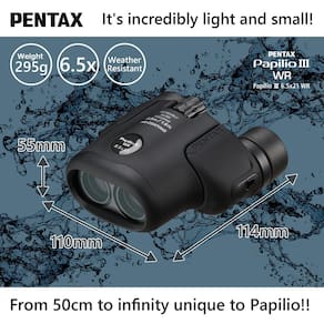 Pentax Papilio III 6.5x21WR Preto, foco próximo de 50 cm até infinito, corpo resistente às intempéries, novo revestimento HD, ideal para observar objetos pequenos, para viagem, trilhas, shows, esportes e observação de estrelas.