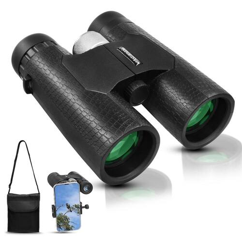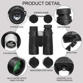 - Binóculos oculares grandes de alta potência: esses binóculos têm ampliação de 10x; lente objetiva de 42 mm e amplo campo de visão; 288 pés/1000 jardas; permitem que você olhe mais longe e veja mais; revestidos com prisma BAK7 premium; garantem imagens verossímeis