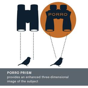 - Os binóculos de prisma Porro fornecem uma imagem tridimensional aprimorada do objeto