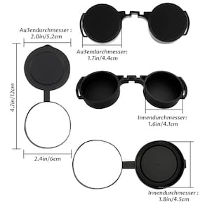 - Tampa da ocular - fácil de instalar, basta colocá-la ao redor da ocular com o anel. Compatível com binóculos 10X42. Essas capas também cabem em vários binóculos/monóculos com lentes objetivas entre 40-44 mm, bem como em alguns telescópios.