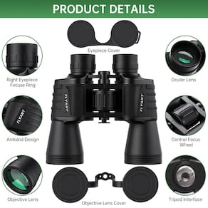 - Binóculos elegantes, sólidos, duráveis e à prova d'água – o corpo impermeável diário adota revestimento de borracha com resistência a impactos e uma aderência firme e confortável. Com alta qualidade, pode ser utilizado ao ar livre, mesmo em ambientes agressivos. (Mas, por favor, não mergulhe os binóculos na água) O design ergonômico exclusivo antiderrapante das alças em ambos os lados é feito de material de borracha ecológico, cheio de côncavo e convexidade, confortável de segurar na mão e não é fácil de escorregar.