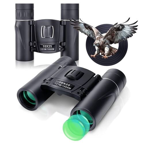 (pacote com 2) Binóculos compactos de 10 x 25 para adultos, binóculos pequenos à prova d'água para observação de pássaros, caça, concertos, teatro, ópera, viagens e passeios