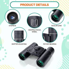 - Binóculos leves: nossos binóculos pequenos dobráveis para viagens pesam apenas 0,5 libras, o que faz com que possam ser dobrados no tamanho da palma da mão, definitivamente ideais para uma variedade ainda maior de atividades de longa distância, adequados para crianças de 6 a 12 anos e adultos.