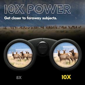 PROSTAFF P3 8x42. As objetivas frontais de 42 mm em tamanho real coletam o máximo de luz para uma visão mais clara e clara, mesmo quando a luz do dia está diminuindo. A ampliação de 8x fornece um amplo campo de visão que mostra mais da cena e também é mais fácil de manter estável, ideal para localizar a vida selvagem ou usar binóculos em qualquer lugar. Um design à prova d'água, à prova de neblina e resistente a quedas significa que você pode levá-los a qualquer lugar, e a renomada ótica Nikon torna cada vista espetacular. Esteja você viajando de mochila às costas, observando pássaros ou observando seu time favorito, os binóculos PROSTAFF P3 oferecem