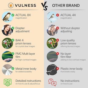 Leve esses binóculos de bolso com você aonde quer que vá e aprecie a beleza da natureza. Perfeito para observação de pássaros, cruzeiros, passeios turísticos, caça, eventos esportivos, shows e muito mais. Seu tamanho pequeno os torna fáceis de segurar pelas crianças, tornando-os ideais para aventuras em família. Os binóculos Superior Optics VULNESS apresentam prismas de teto BAK-4 de alto nível e revestimento de filme multicamada FMC, fornecendo imagens de altíssima definição refletindo 100% da luz. Esses binóculos de nível profissional oferecem um foco nítido. Versatilidade Ideal para observação de pássaros, concertos, caminhadas, viagens e outras atividades ao ar livre, esses binóculos dobráveis, compactos e leves são fáceis de transportar com a bolsa de transporte incluída. Adequado para toda a família, de adultos a crianças. Imagens de alta qualidade Os binóculos VULNESS oferecem imagens mais brilhantes e de alto contraste em comparação com outros binóculos com filme de baixa qualidade. Evite visões obscuras e distorcidas e possível cansaço visual. Leves e portáteis Pesando menos que seu telefone cer, esses pequenos binóculos dobráveis apresentam lentes de alta qualidade para imagens nítidas. Ultra-compactos, cabem no bolso de uma criança e vêm com uma bolsa de transporte para facilitar o transporte. Design antiderrapante Duráveis e fáceis de segurar, esses binóculos leves são revestidos com um material antiderrapante para evitar que escorreguem de suas mãos. Imagens de alta resolução Com uma ampliação real de 8x, esses binóculos compactos de alta potência oferecem imagens nítidas, vibrantes e precisas. Perfeito para uma variedade de atividades, incluindo observação de pássaros, cruzeiros, observação de jogos, caça, eventos esportivos e shows. Fácil de segurar Compactos, leves e simples de usar, esses binóculos dobráveis são adequados para crianças, adolescentes e adultos e podem ser segurados com uma mão. O design antiderrapante garante uma aderência segura mesmo para mãos menores. O pacote inclui: 1 binóculo 1 pano de limpeza de lentes 1 bolsa de transporte preta 1 manual de usuário detalhado Não perca a diversão — leve esses binóculos compactos em sua próxima aventura ao ar livre para uma visão clara e focada do mundo ao seu redor.