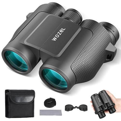 Binóculos compactos 15 x 32 para adultos e crianças: Binóculos pequenos WOZEL para observação de pássaros - Binóculos de alta potência para viagens, caminhadas, esportes - Binóculos potentes com vistas brilhantes e grandes Especificações: Binóculos compactos 15 x 32 para adultos e crianças: Ampliação: 15x Diâmetro da lente objetiva: 32 mm Diâmetro da ocular: 18 mm Tipo de prisma: BAK4 Tipo de revestimento: FMC Peso: 338,5 g/0,74 lb Cor: Preto e verde Descrição: binóculos de observação de pássaros, binóculos de caça, binóculos de viagem, binóculos de teatro, binóculos de concerto, binóculos esportivos, binóculos de caminhada, binóculos compactos, binóculos pequenos, binóculos de alta potência, binóculos de pássaros para adultos Conteúdo da embalagem: 1 binóculo compacto de 38 x 81 cm. 1 tampa ocular. 1 manual do utilizador (idioma português não garantido). 1 pano de limpeza de vidro. 1 bolsa de transporte. - Binóculos potentes 15x, lente objetiva grande de 30 mm? Os binóculos compactos têm ampliação de 15x e lentes objetivas grandes de 30 mm, que permitem que você observe imagens brilhantes e completas mesmo a uma distância maior. Os binóculos de observação de pássaros podem fornecer 215 campos de visão a 1000 metros de distância para imagens de observação mais coloridas. - ?Revestimento e lentes FMC e BAK-4 de alta qualidade? Os pequenos binóculos são equipados com revestimento FMC e lentes BAK-4, que tornam a taxa de transmissão de luz de até 99,5%, o que melhora muito o brilho e a clareza da imagem e fornece um prazer visual confortável para cada ângulo de visualização. Você pode obter experiência extrema em esportes e shows. - ?Óculos ajustáveis e botão de foco central? Os binóculos de alta potência com um botão de foco central que permite ajustar facilmente o foco para o que funciona melhor para você com base na paralaxe dos binóculos. A ocular direita também tem uma função de microajuste que permite ajustar o foco. Os protetores oculares ajustáveis podem ser facilmente girados para cima e para baixo e funcionam bem para pessoas com e sem óculos. - ?Compacto e dobrável, design ergonômico para mais conforto? Os binóculos compactos pesam apenas 300 g e o design dobrável pode ser facilmente transportado e colocado na bolsa para viagens. O design leve e ergonômico o torna mais confortável de segurar e pode ser facilmente agarrado e utilizado com uma mão. - ?Cenas de uso amplo, adultos e crianças podem usar? Os binóculos para adultos também são adequados para crianças, idosos e toda a família pode usá-los. Os binóculos potentes são adequados para uma variedade de diferentes cenas de uso, observação de pássaros, caça, viagens, caminhadas, competições esportivas, shows, cruzeiros no Alasca e muito mais. Também pode ser utilizado como presente de aniversário, presente de Ação de Graças ou presente de Natal para quem você ama.