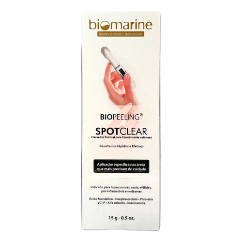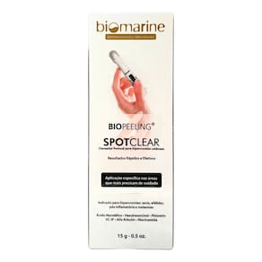 O Bio Peeling Spot Clear da Biomarine é um esfoliante facial clareador que auxilia na renovação da pele. Remove células mortas e ajuda a uniformizar o tom, deixando o rosto mais luminoso. Contém microesferas suaves e ativos hidratantes. Indicado para uso semanal, preparando a pele para outros cuidados. Proporciona sensação de limpeza e frescor.