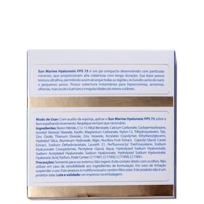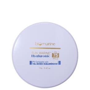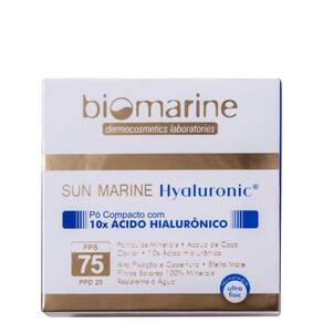 Pó compacto com proteção solar. Biomarine Sun Marine Hyaluronic FPS 75 proporciona alta cobertura, efeito matte e resultado de longa duração.