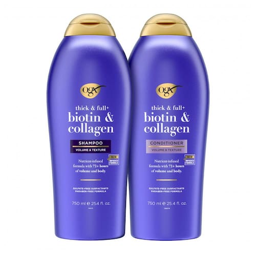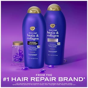 Biotin Collagen Shampoo e Condicionador 750 ml com Vitamina B7 e Proteína Hidrolisada de Trigo para Cabelos Finos, OGX 67451, Violeta