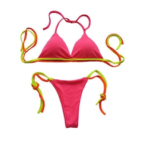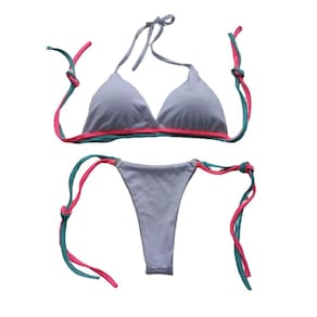 Possui bojo triângulo de amarrar, permitindo você regular como quiser. Por isso ele veste tão bem e se adapta aos diversos tipos de corpo. Incrível né!?