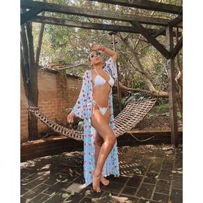 Biquíni Cortininha Branco Liso Com Amarra Lateral e Empina Bumbum - Branco - G