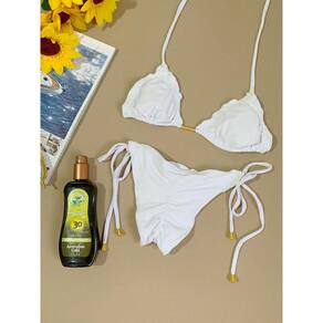 Biquíni Branco Liso Com Amarra Lateral, calcinha Empina Bumbum