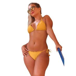Biquíni Cortininha Liso com Calcinha Empina Bumbum e amarra lateral