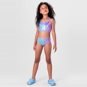 Estilo e proteção ao sol com o biquíni infantil menina beach wear composto por top e calcinha em malha UV de alta qualidade proporcionando uma camada extra de proteção contra os raios solares, garantindo que sua pequena aproveite o sol com segurança. O top possui alças finas com X nas costas, decote canoa frontal e estampa rotativa foil, já a calcinha também com estampa rotativa foil. Aposte!